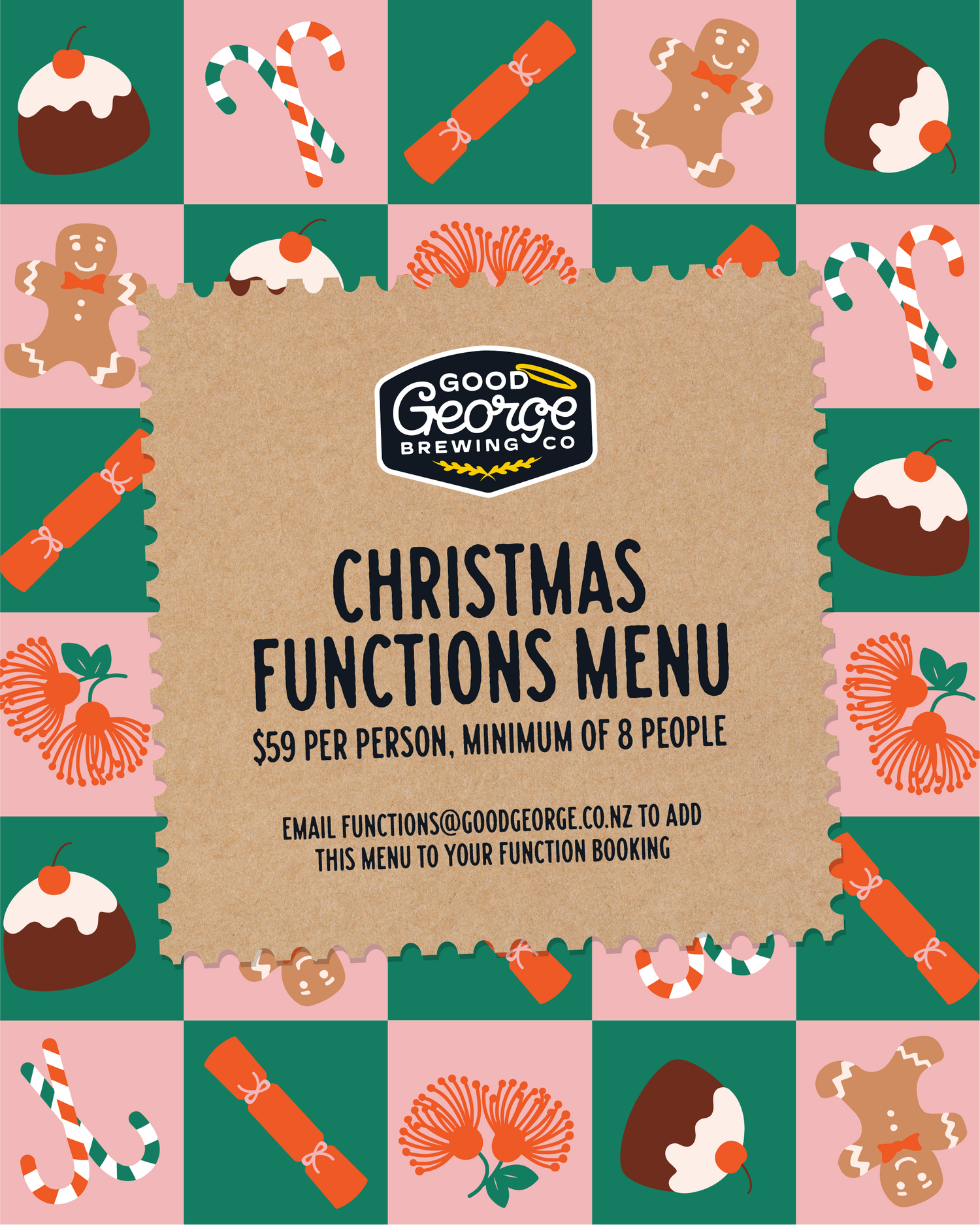 Email functions@goodgeorge.co.nz to book. T&Cs apply.